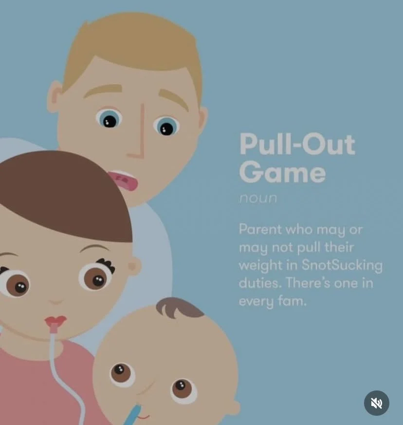 "Pull out game: noun. Parent who may or may not pull their weight in SnotSucking duties," on another social media post.